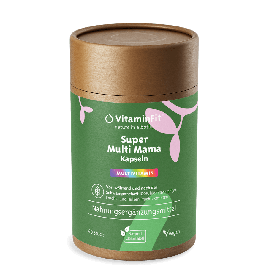 Das Super Multi Mama von VitaminFit ist ein hochwertiges, 100% natürliches und pflanzliches Nahrungsergänzungsmittel ohne jegliche Zusatzstoffe, das für die Zeit während und nach der Schwangerschaft geeignet ist. Dieses Multivitamin Mama kann auch während der Stillzeit verwendet werden. Es enthält keine tierischen Bestandteile und ist daher auch für eine vegetarische oder vegane Ernährung geeignet. Es ist ein kraftvolles und konzentriertes Nahrungsergänzungsmittel mit einer Reihe von wichtigen Vitaminen und Mineralien für eine gute Abwehr und Unterstützung des Immunsystems für Sie und den Fötus.