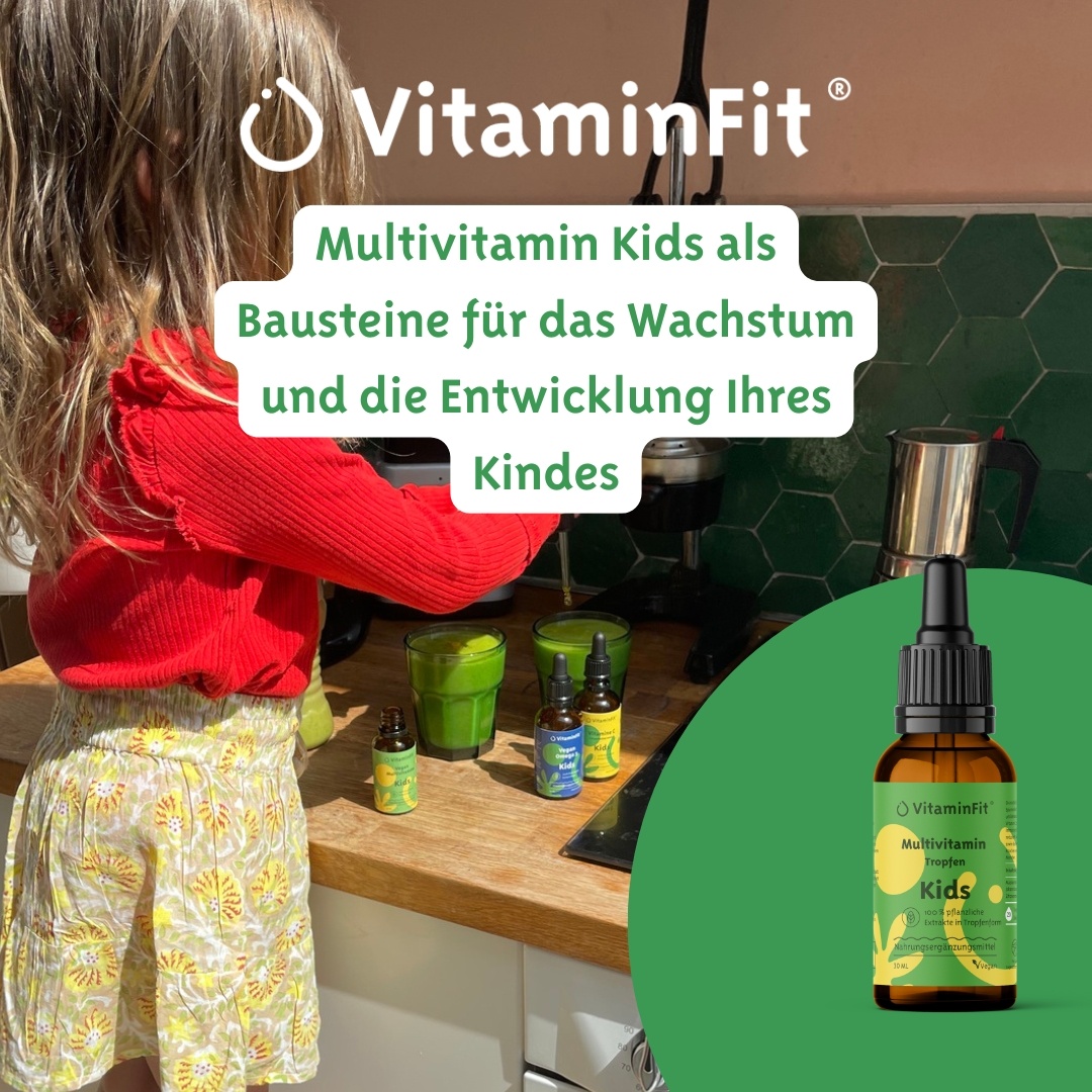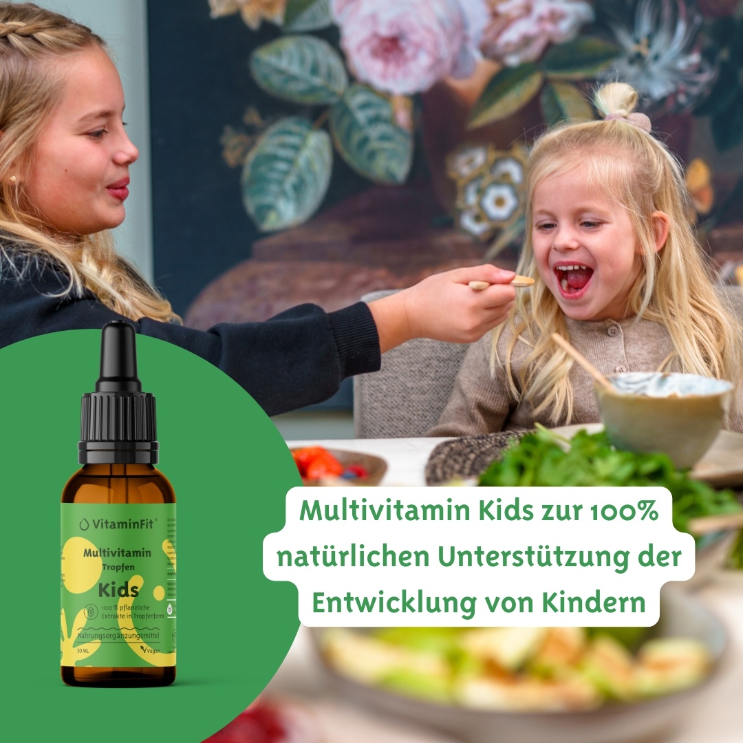Kinder wachsen schnell und haben ein aktives Leben. Deshalb sind genügend Vitamine und Mineralien wichtig. Unser Körper ist nicht in der Lage, Vitamine (außer Vitamin D) und Mineralien selbst zu produzieren. Multivitamintropfen aus Pflanzenextrakten sind 100 % natürlich und eignen sich als Nahrungsergänzungsmittel für Ihr Kind.