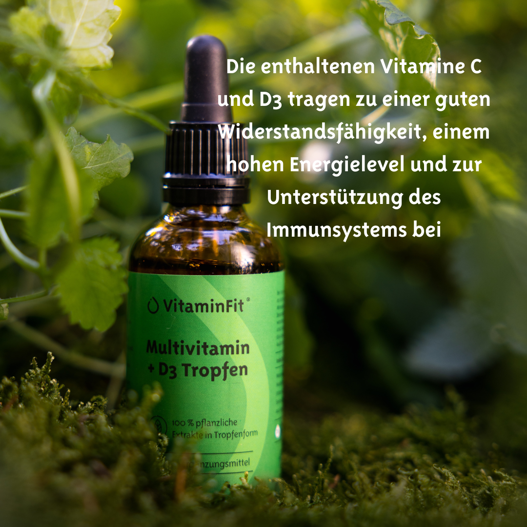 In der Hektik des Tages vergessen wir regelmäßig, uns ausreichend und abwechslungsreich zu ernähren. So kann es passieren, dass uns wichtige Vitamine und Mineralien fehlen, die unser Körper jeden Tag braucht. Der Körper ist nicht in der Lage, Vitamine (außer Vitamin D) und Mineralstoffe selbst herzustellen. Wir sind also auf die Nahrung angewiesen, die wir zu uns nehmen. Multivitamintropfen mit D3 können helfen, unsere Ernährung zu ergänzen, um mehr Energie zu haben, sich fit zu fühlen und widerstandsfähig zu sein.