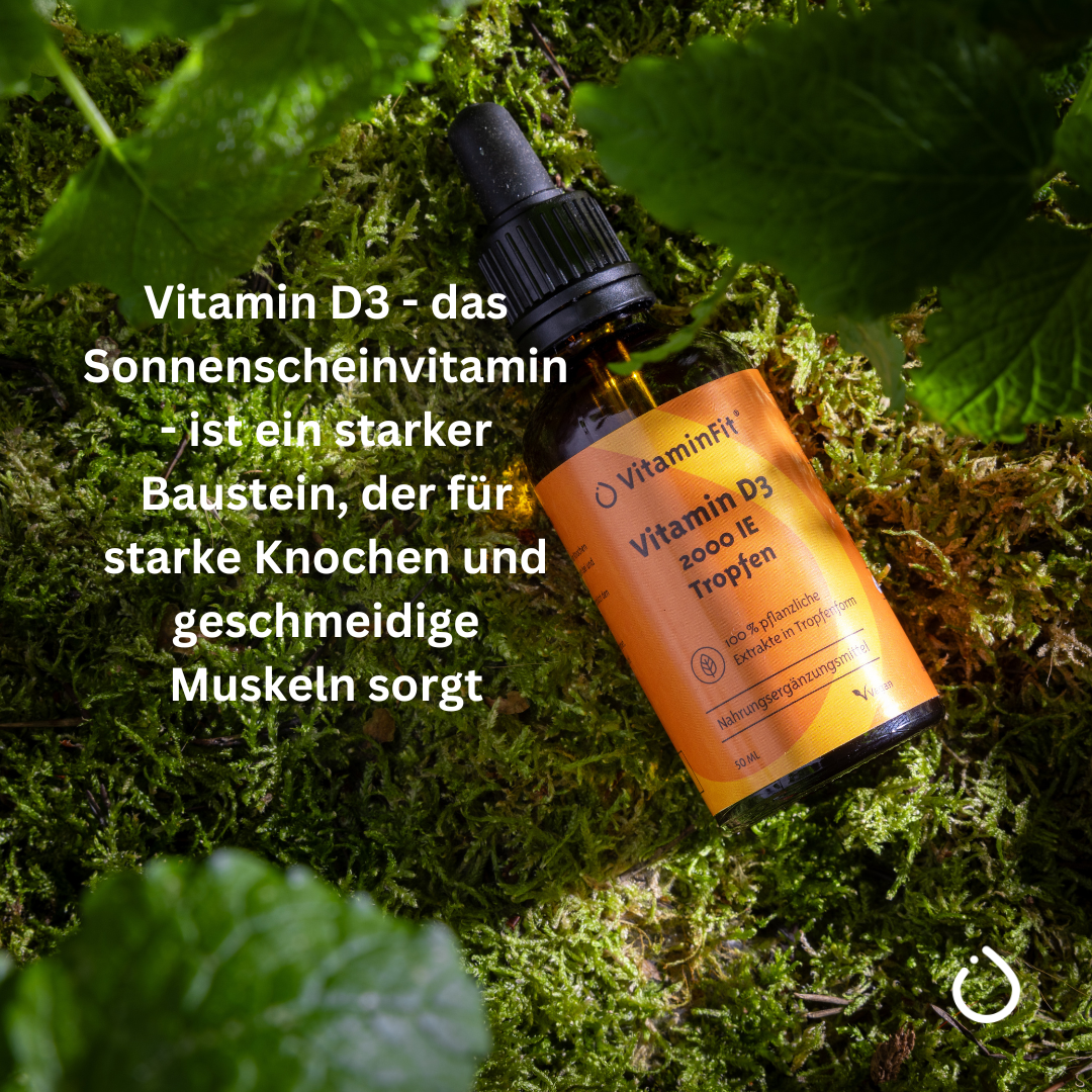 VitaminFit Vitamin D3 Tropfen sind hochdosiert und unterstützen ein starkes Immunsystem, gesunde Knochen und Muskeln.