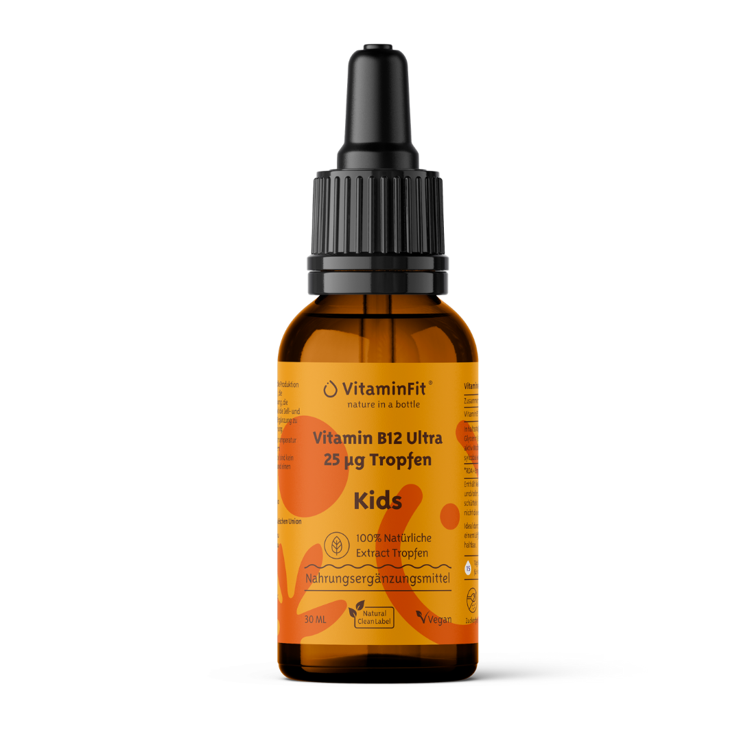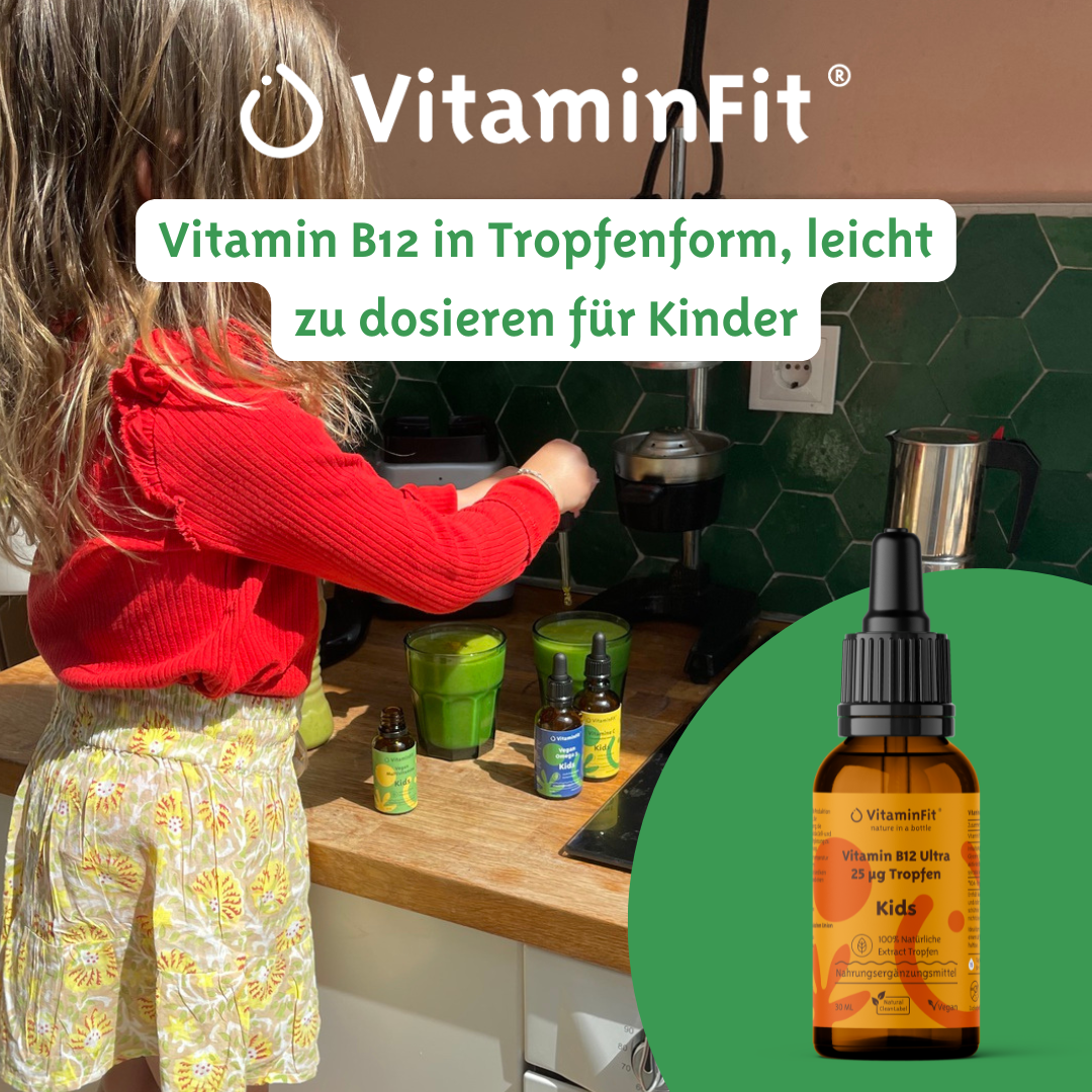 VitaminFit Ultra Vitamin B12 25 ug Kids Tropfen hochdosiert für Kinder. Gute Unterstützung bei einer vegetarischen oder veganen Ernährung.