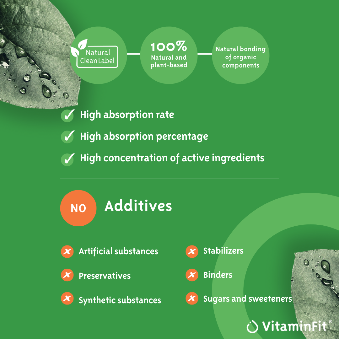 Thanks to the use of pure, plant-based ingredients and vegan capsules, this supplement is suitable for daily use and free from synthetic additives.