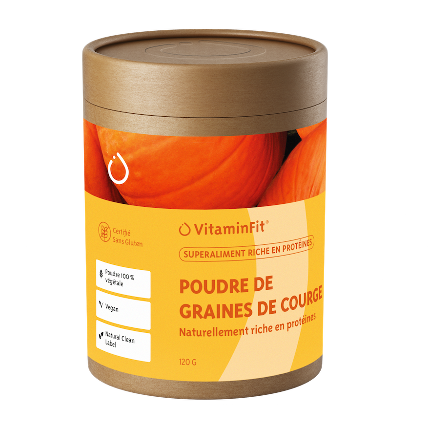 VitaminFit Pumpkin Seed Protein Powder is a 100% plant-based and natural protein powder made from pure ground pumpkin seeds. It contains all the nutrients naturally present in the seeds, without any additives.