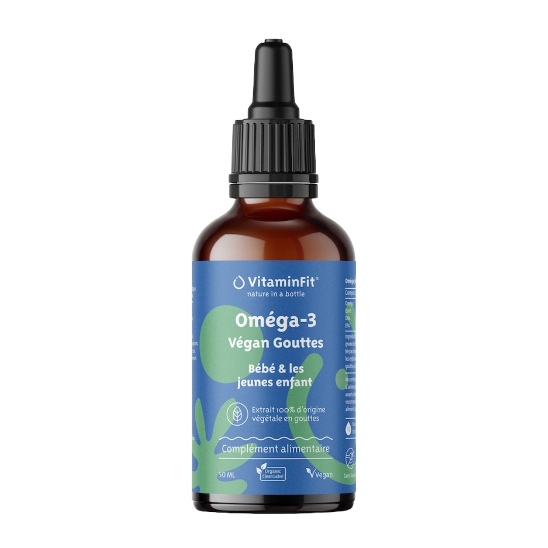Si vous préférez les oméga 3 sans poisson, notre VitaminFit vegetable omega 3 with Algae Oil est la solution. Avec pipette de dosage pratique !
