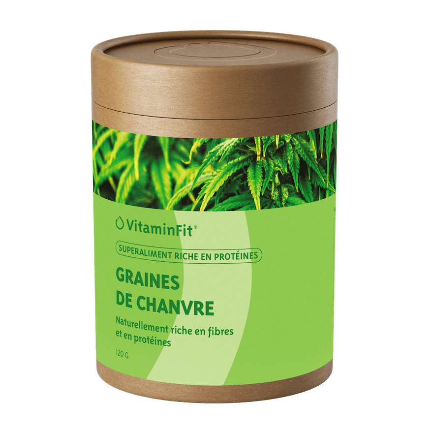 Les graines de chanvre sont naturellement une source de protéines végétales et de fibres et s’intègrent dans une alimentation variée et équilibrée ; les protéines contribuent à la croissance et au maintien de la masse musculaire et les fibres contribuent à une fonction intestinale normale.