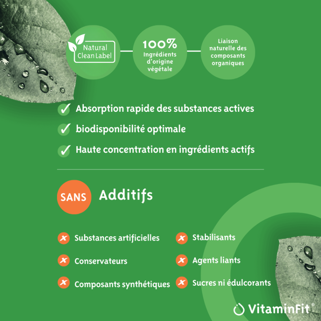 Grâce à l'utilisation d'ingrédients végétaux purs et de capsules végétaliennes, ce complément est adapté à une utilisation quotidienne et sans additifs synthétiques.