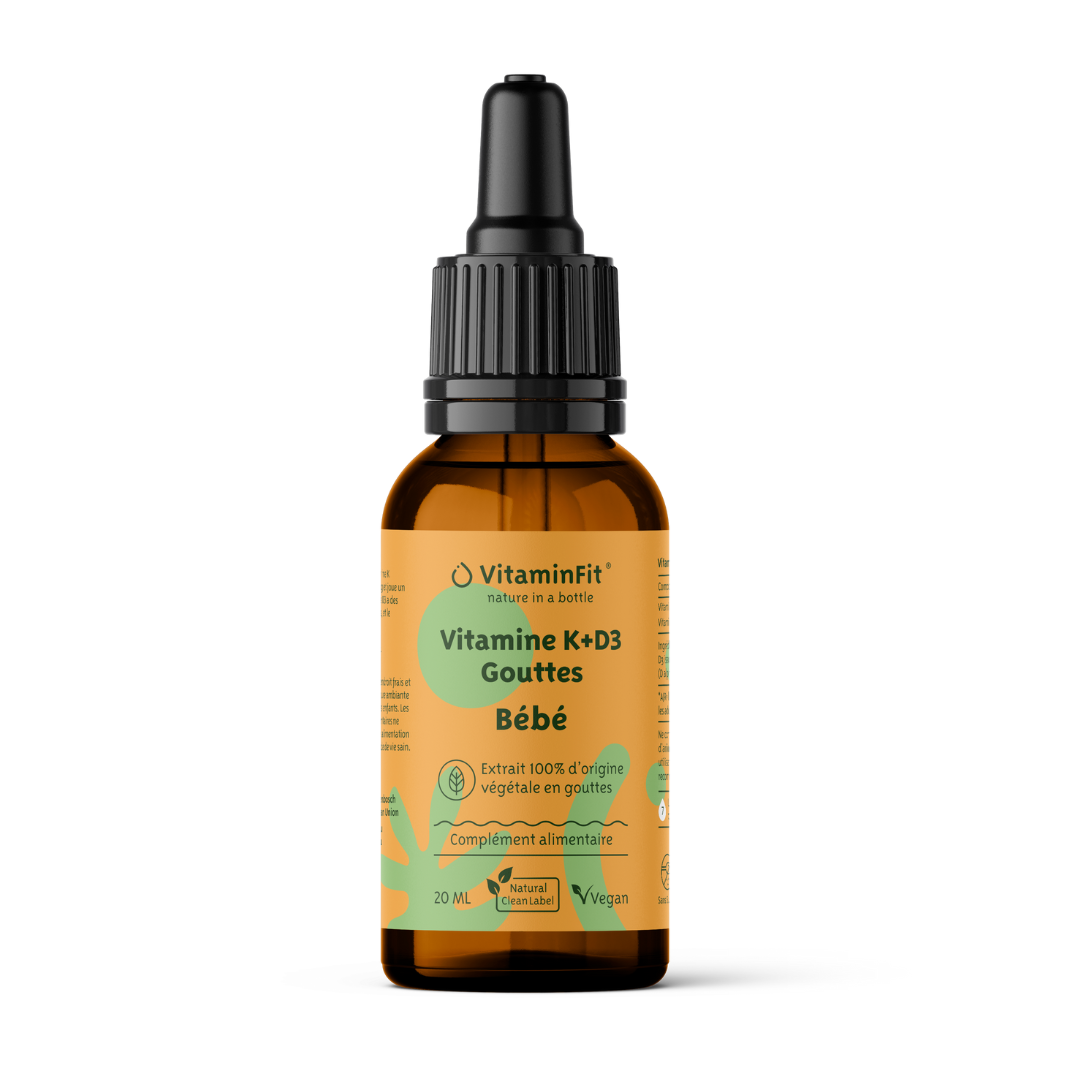 La Vitamine K + D3 en forme de gouttes pour bébé est un complément alimentaire à 100% naturel et végétal.