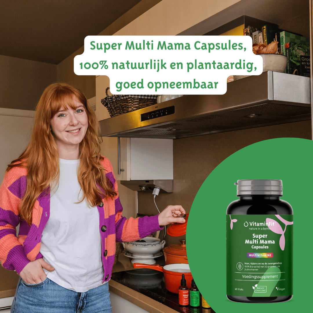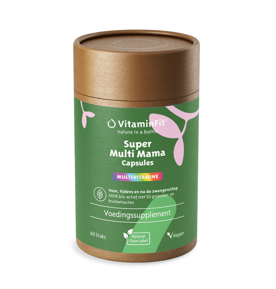 De VitaminFit Super Multi Mama is een superieur aan 100% natuurlijke & plantaardige voedingsstoffen zonder enige toevoeging en geschikt voor- tijdens en na de zwangerschap. Deze multi mama kan ook worden ingezet tijdens de borstvoeding. Het bevat geen dierlijke ingrediënten en is hierdoor ook geschikt bij een vegetarisch of veganistisch voedingspatroon. Het is een krachtig en geconcentreerd supplement met een scala aan belangrijke vitamines en mineralen voor een goede weerstand en ondersteuning van het immuunsysteem voor jou en de foetus.